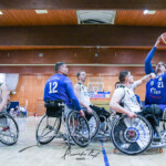 Zwei Heidelberger Rollstuhlbasketballer gegen vier Ulmer Spieler beim Punkten Die beiden Matchwinner Marc Westermann und Johannes Ernst. Dank ihrem sehr guten Zusammenspiel hatten die Ulmer bald schon den Mut verloren.