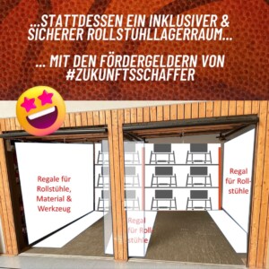 Wir wollen mit dem Geld unseren Rollstuhllagerraum sicherer und in Teilen barrierefrei gestalten. Denn – da werdet ihr uns recht geben – der aktuelle Zustand ist 🤐😭🙈.