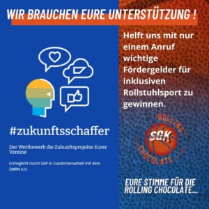 Die SGK Rolling Chocolate Heidelberg nimmt am Wettbewerb #zukunftsschaffer teil und dort haben wir mit unsem Projekt die Chance auf 5000€ im Publikumsvoting, welches von SAP gesponsert wird.