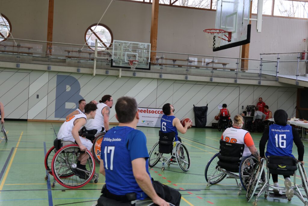 Gegen ein extrem engagiert verteidigendes Team der MTV Stuttgart Wheelers taten sich die Rolling Chocolate 2 in der ersten Begegnung des Tages zunächst schwer. Vor allem in den Anfangsminuten wurde um jeden Ball gekämpft. Die Wheelers warfen sich mit vollem Einsatz in die Aktionen, doch die Heidelberger ließen sich davon nicht aus der Ruhe bringen. In der Offensive erspielte man sich immer wieder hochprozentige Abschlüsse direkt am Korb. Das Timing stimmte und mit gut gesetzten Blocks setzte man sich gegenseitig immer wieder stark in Szene. Defensiv wurde das Team von Minute zu Minute besser. Man ließ keine einfachen Würfe in der Zone zu und überzeugte durch klare Absprachen. Man hatte aus der letzten Partie gelernt und machte es den Gegnern diesmal konsequent sehr schwer unter den Korb zu kommen. Der beste Beleg dafür ist, dass man einen von Stuttgarts Topscorern bei gerade einmal einem Punk halten konnte. Dank der Tiefe im Kader konnten die Heidelberger regelmäßig durchwechseln und immer wieder neue Energie aufs Feld bringen. Team 2 startete hochmotiviert in das Schlussviertel. Egal ob auf dem Feld oder von der Bank: Alle waren voll dabei, laut, präsent und fokussiert. Dank genau diesem Einsatz konnte das Team einen verdienten 41:22 Sieg feiern.