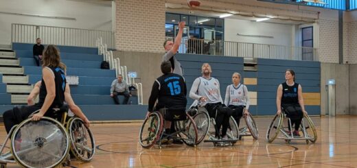 Henning ist ein Supertyp, der bei einem von der SG Kirchheim organisierten Handballcamp für Mädchen und Jungen dabei ist und ihnen die Finessen des Handballspiels beibringt. Wir konnten ihm ein, zwei Dinge über Rollstuhlbasketball erzählen. Später dann hat er den Rollstuhl selbst ausprobiert. Er war natürlich hellauf begeistert 🙂